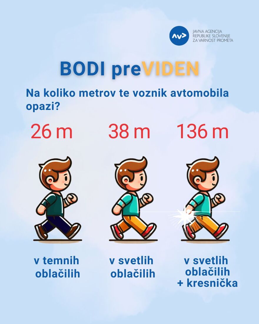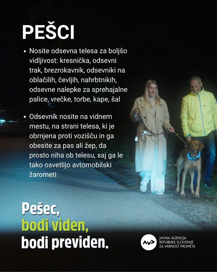 Poskrbite za svojo vidnost in varnost v prometu. Bodi previden. Bodi pozoren.