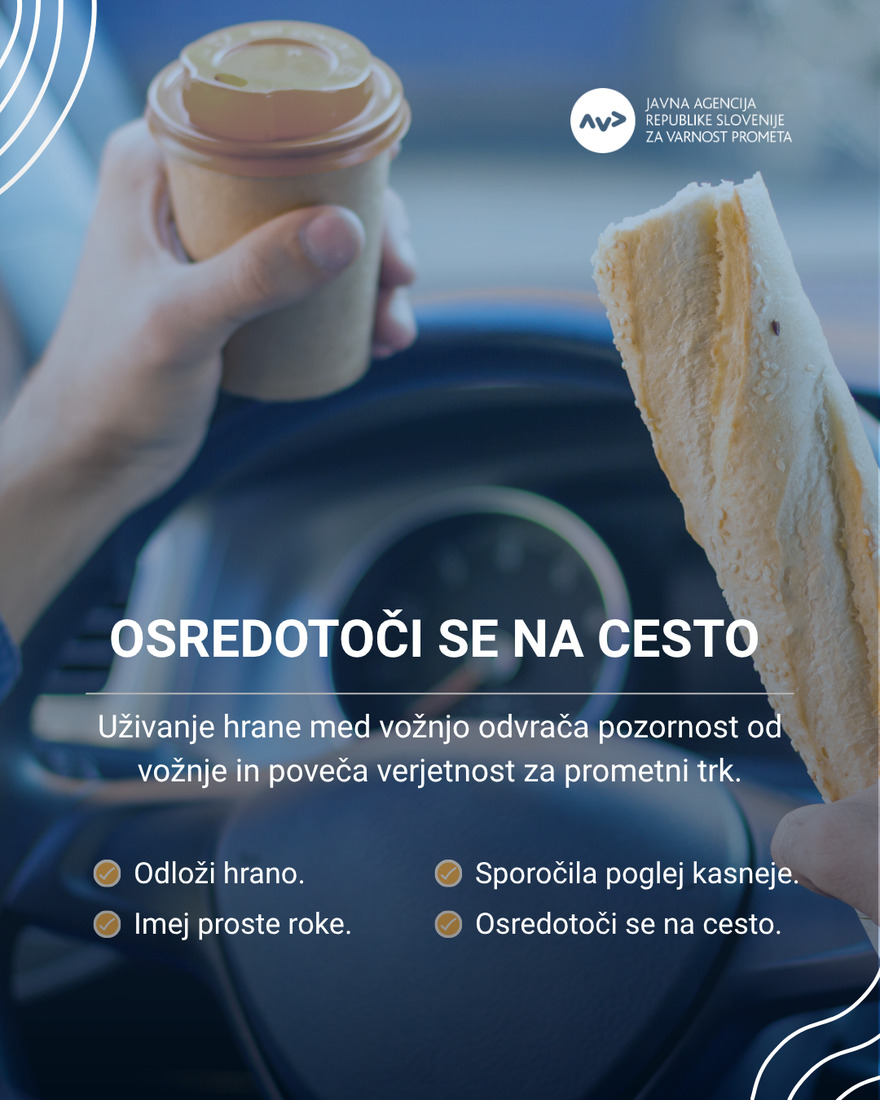 🚗 Vozniki – bodite pozorni, prilagodite hitrost in ne uporabljajte telefona med vožnjo.