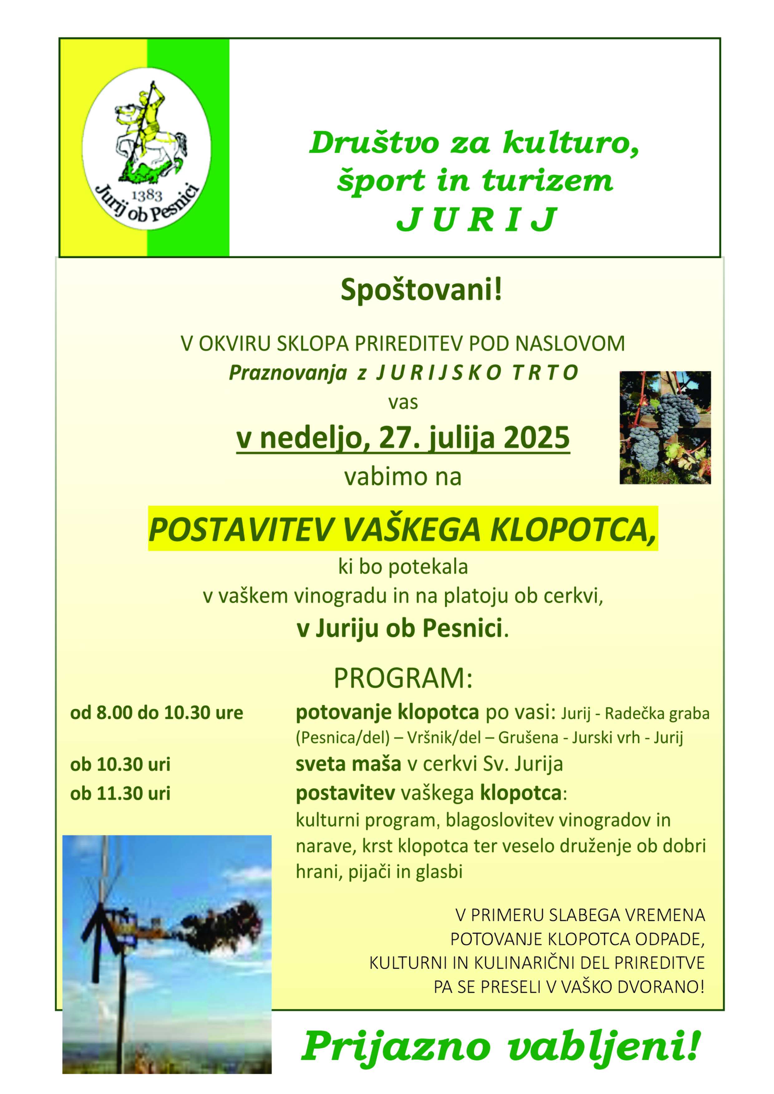 POSTAVITEV VAŠKEGA KLOPOTCA V JURIJU