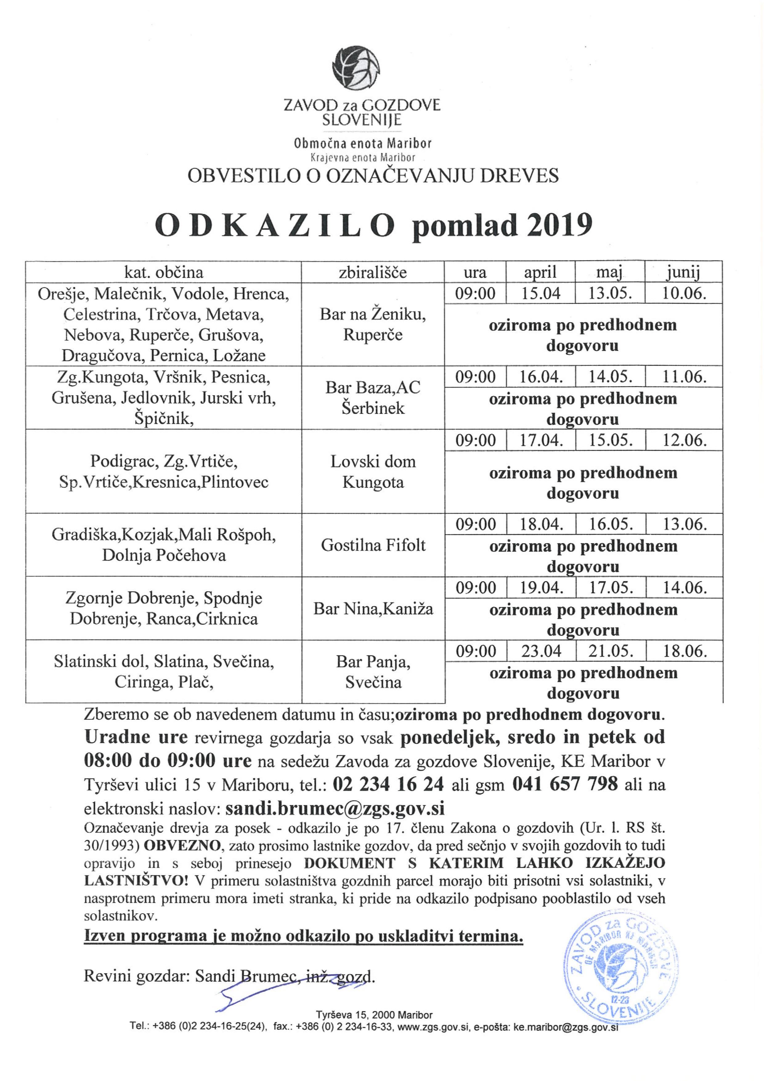 Obvestilo o označevanju dreves