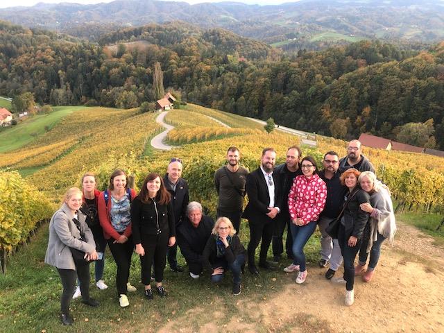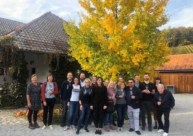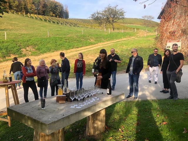 Tako smo izvedli prvo delovno srečanje v občini Kungota v izvedbi ZIP in se pogovorili z županjo občine Kungota go. Tamaro Šnofl, go. Majo Kolmanič v Hiši vseh generacij, obiskali kmetijo Leber - Vračko, kjer so nas prijazno sprejele ga. Katja, ga. Barbara in ga. Alenka. Pot nadaljevali mimo Vina Gaube, Vina Šerbinek do TK Dreisiebner z obveznim postankom v srčku med vinogradi. Ob vinogradniškem muzeju na Keblu smo predstavili aktivnosti ob meji in projekt Vinotour iz prve roke ge. Pike Radmilovič in po obronkih in panoramski vožnji na meji med Slovenijo in Avstrijo predstavili naše vinogradniške kmetije in se tokrat ustavili ob koncu delovnega srečanja na vinogradniški kmetiji Leber na Podigracu.