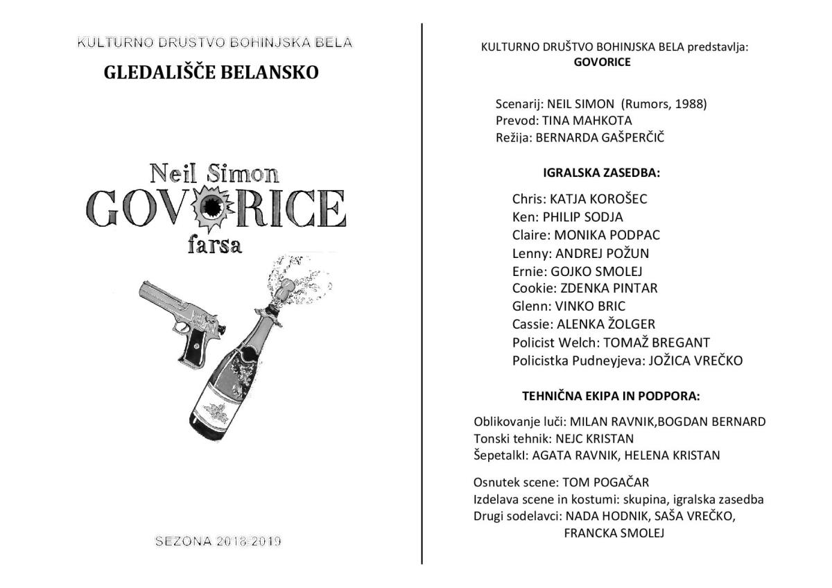 Kulturno društvo Bohinjska Bela: Neil Simon GOVORICE