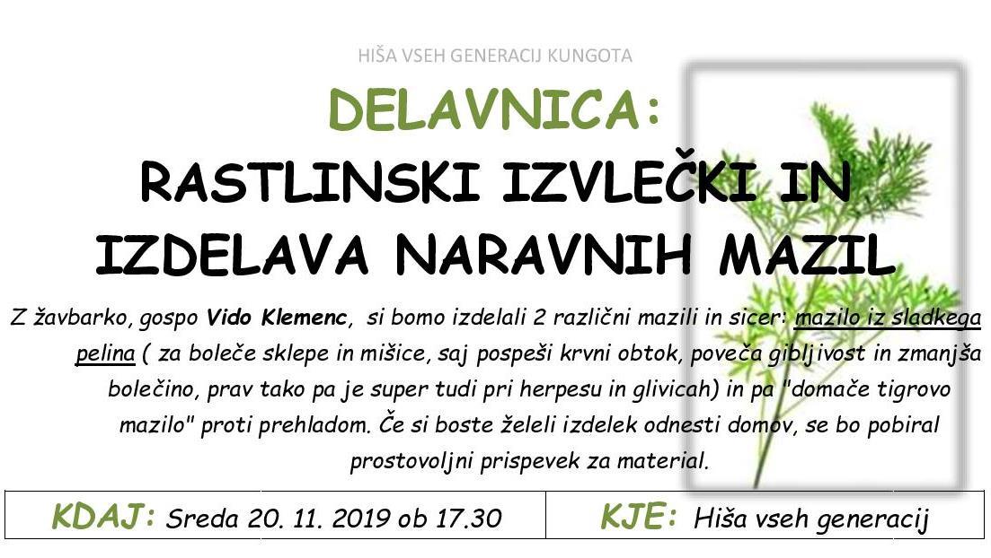 DELAVNICA: Rastlinski izvlečki in izdelava naravnih mazil