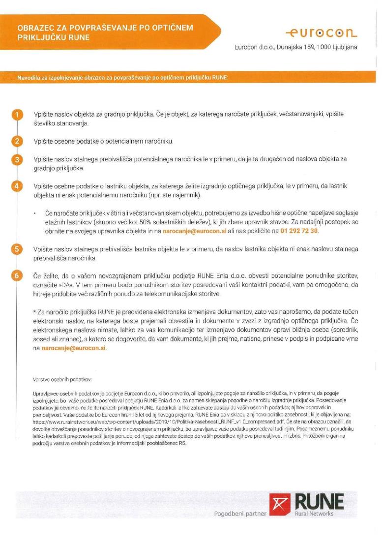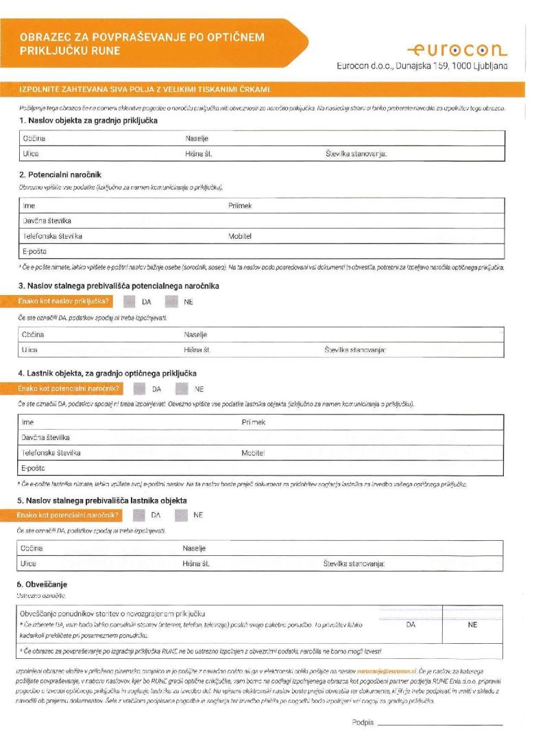 Preprosto izpolnite obrazec za povpraševanje in ga posredujete na naveden naslov. V primeru dodatnih vprašanj se obrnete na podjetje Eurocon d.o.o. katerega podatke najdete v dopisu.