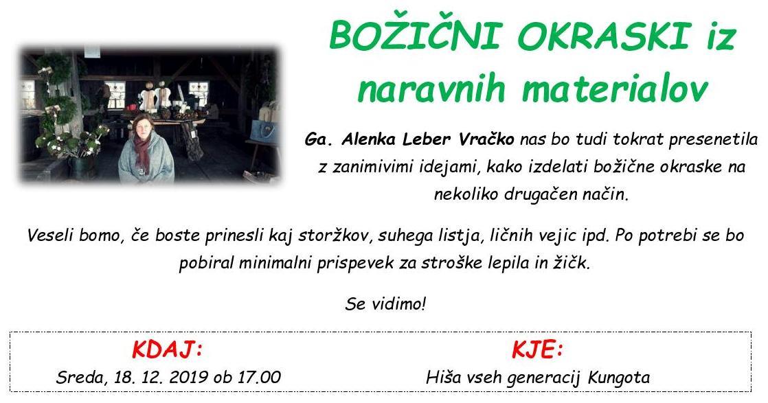 Ga. Alenka Leber Vračko nas bo tudi tokrat presenetila z zanimivimi idejami, kako izdelati božične okraske na nekoliko drugačen način.