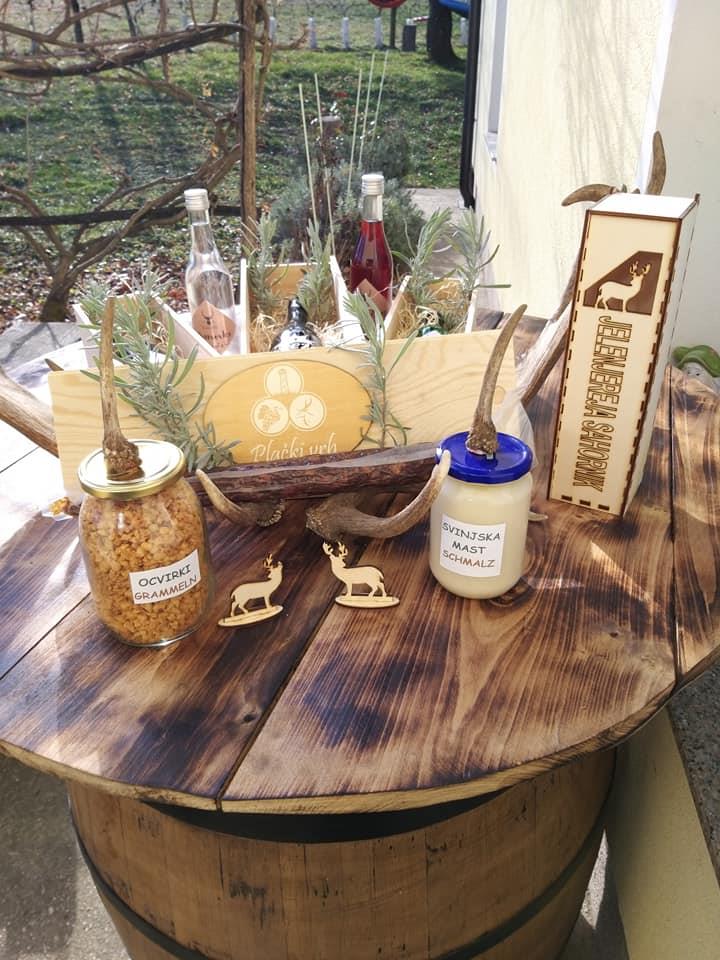 Le 70 metrov od njega pa domuje vinotoč, kjer gostom – natočijo vino: rumeni muškat, renski rizling, sauvignon. Najbolj priljubljena hrana sta divjačinski golaž in narezek iz suhomesnih izdelkov, najbolj priljubljen – po predhodnem dogovoru – pa ogled jelenov, damjakov in muflonov.