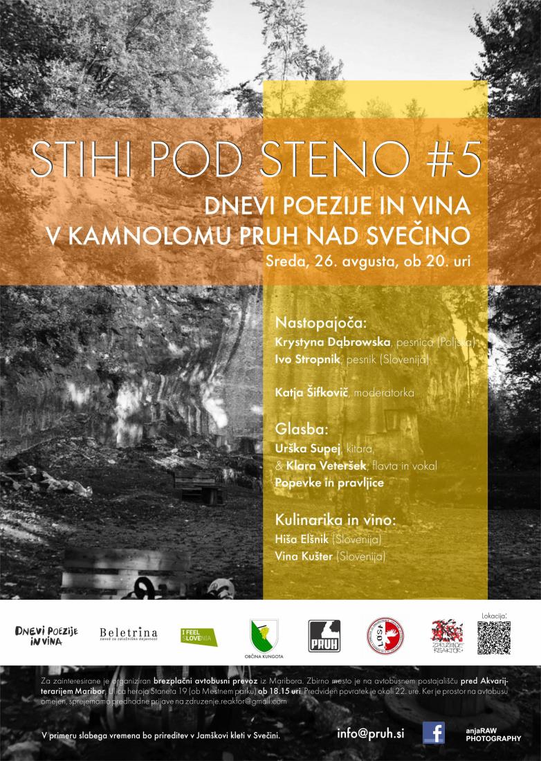 Razmeram navkljub vas vabimo v zavetje očarljivega kamnoloma Pruh nad Svečino, ki bo že petič gostil predvečer festivala Dnevi poezije in vina 2020 (