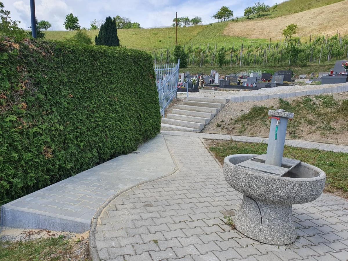 Pokopališče: Ureditev ograje pokopališča pri mrliški vežici, stopnic in vhodne rampe;